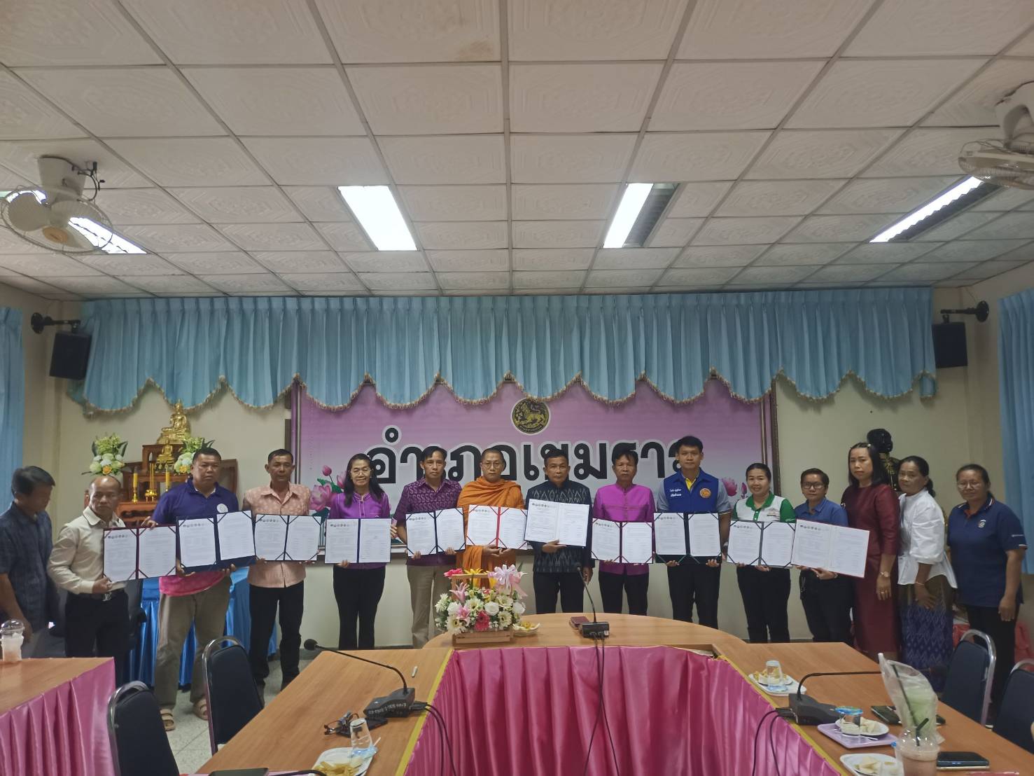 การลงนามบันทึกข้อตกลงความร่วมมือ (MOU) ประกาศวาระตำบลเข้มแข็ง ตามหลักปรัชญาของเศรษฐกิจพอเพียง ตำบลขามป้อม อำเภอเขมราฐ จังหวัดอุบลราชธานี