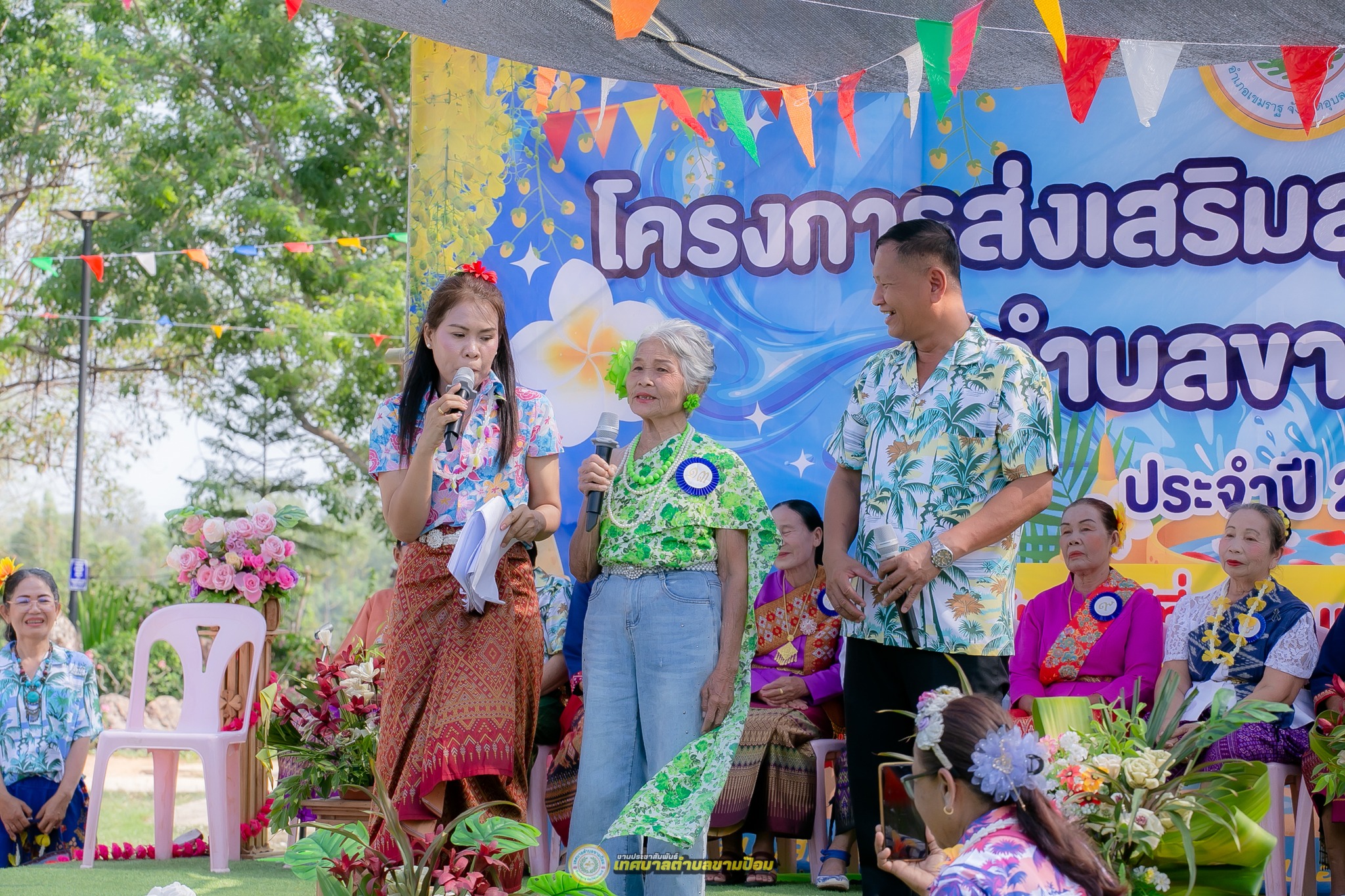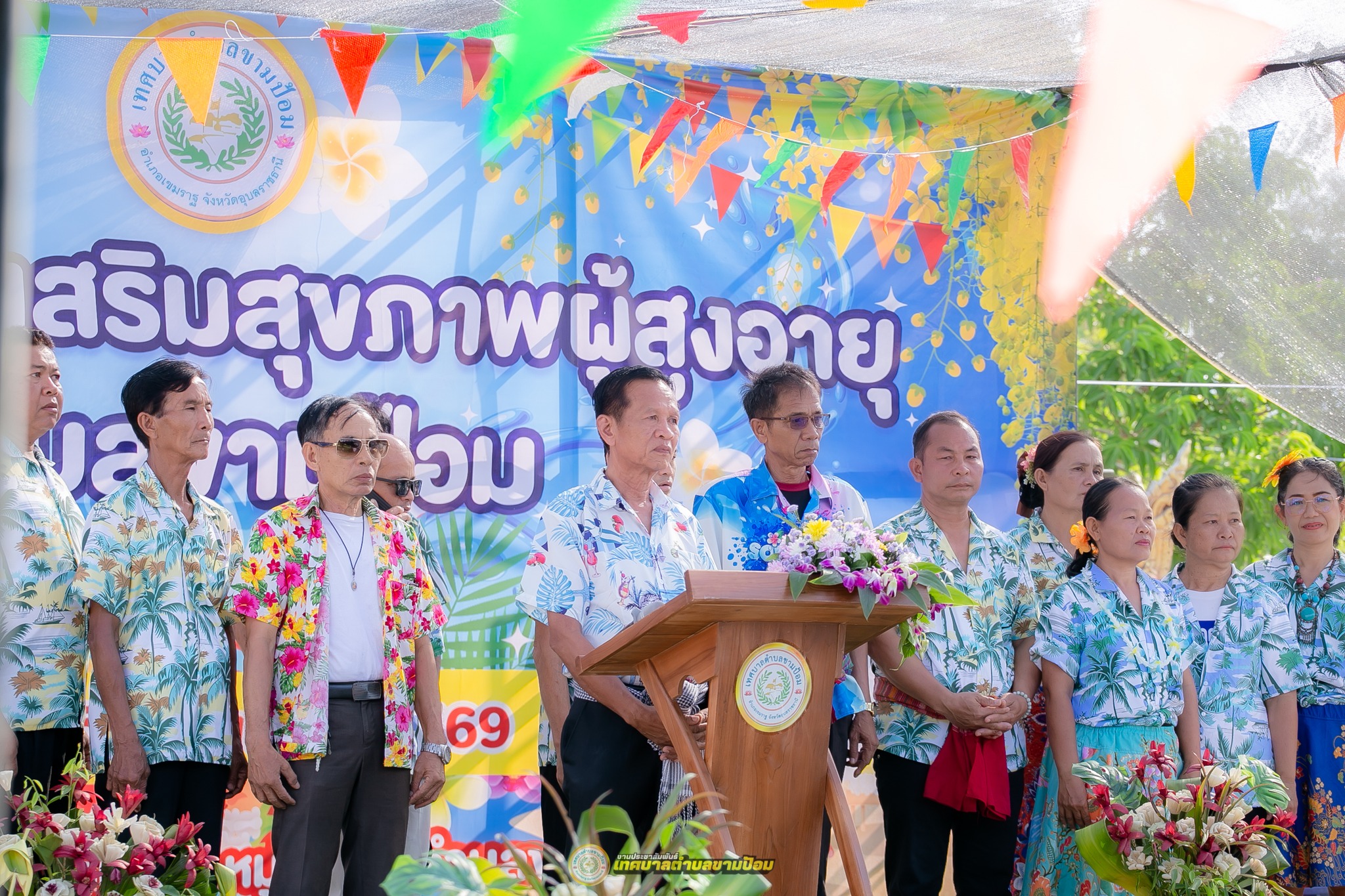 วันศุกร์, 10 เมษายน 2569 09:11โครงการส่งเสริมสุขภาพผู้สูงอายุตำบลขามป้อม ประจำปี 2569 วันศุกร์ที่ 10 เมษายน 2569 ณ โดยนายอนุชิต อินทร์หอม นายกเทศมนตรีตำบลขามป้อม เป็นประธานในโครงการและกล่าวเปิดการจัดงานพร้อมรับชมการแสงดของกลุ่มผู้สูงอายุ ชมรมนางรำตำบลขามป้อม ยังมีการประกวดธิดาสูงวัย ประจำปี 2569 และยังมีกิจกรรมสรงน้ำขอพรผู้สูงอายุ ณ ที่พักสงฆ์บ้านดอนแซง หมู่ที่ 16 ตำบลขามป้อม อำเภอเขมราฐ จังหวัดอุบลราชธานี