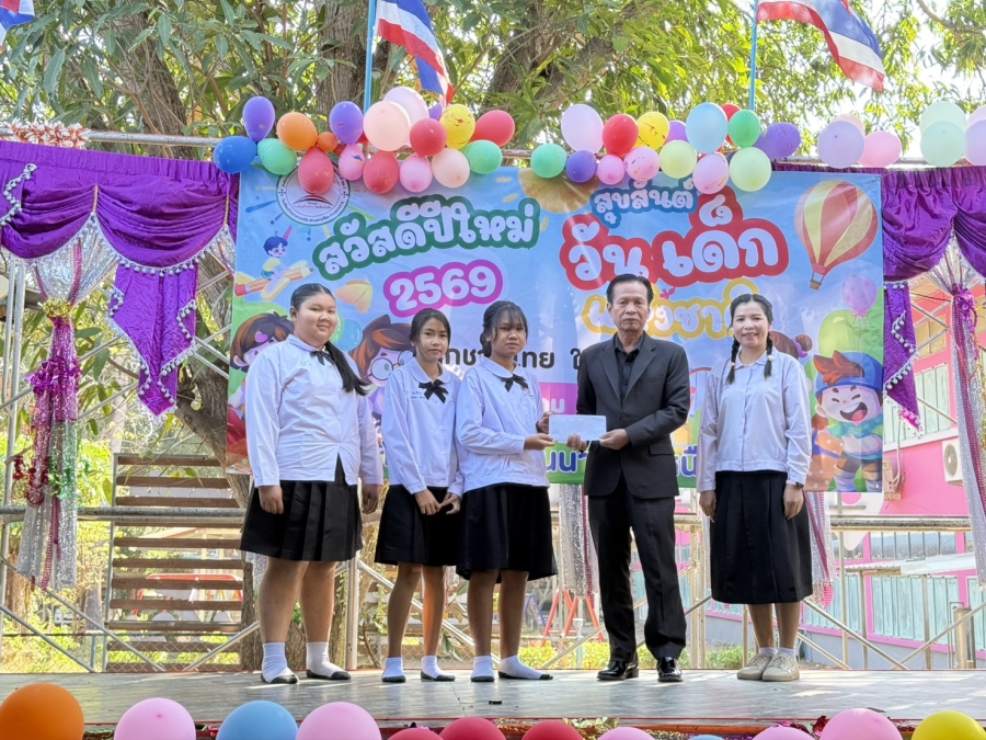 เทศบาลตำบลขามป้อมร่วมพิธีเปิดกิจกรรมวันเด็กแห่งชาติและมอบทุนการศึกษาและขนม ณ โรงเรียนบ้านนาตาลเหนือ คำขวัญวันเด็กแห่งชาติประจำปี 2569 “รักชาติไทย ใส่ใจโลก”